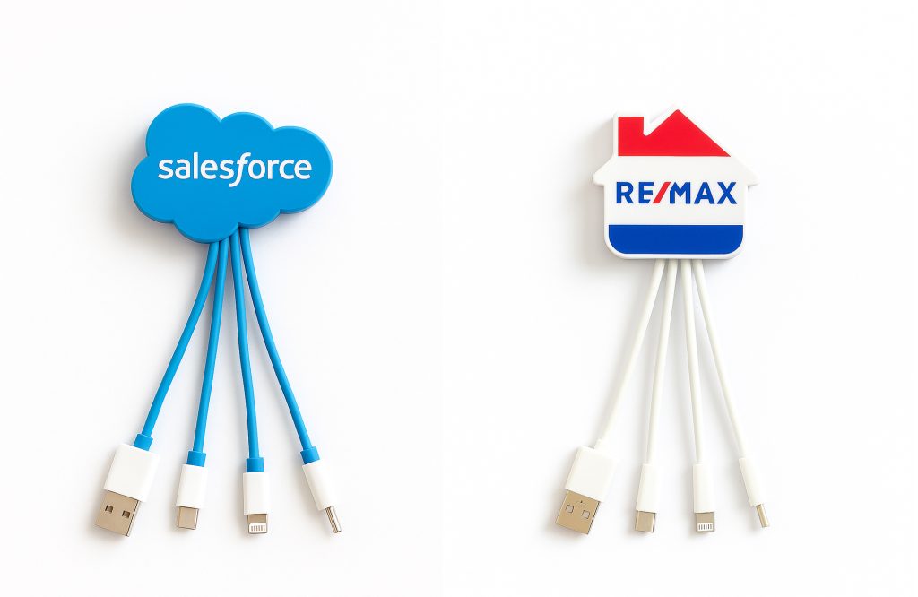 Imagina cables con la forma de tu marca en 3D y con distintos tipos de conectores. ¡Una idea innovadora que seguro llamará la atención de tus clientes!